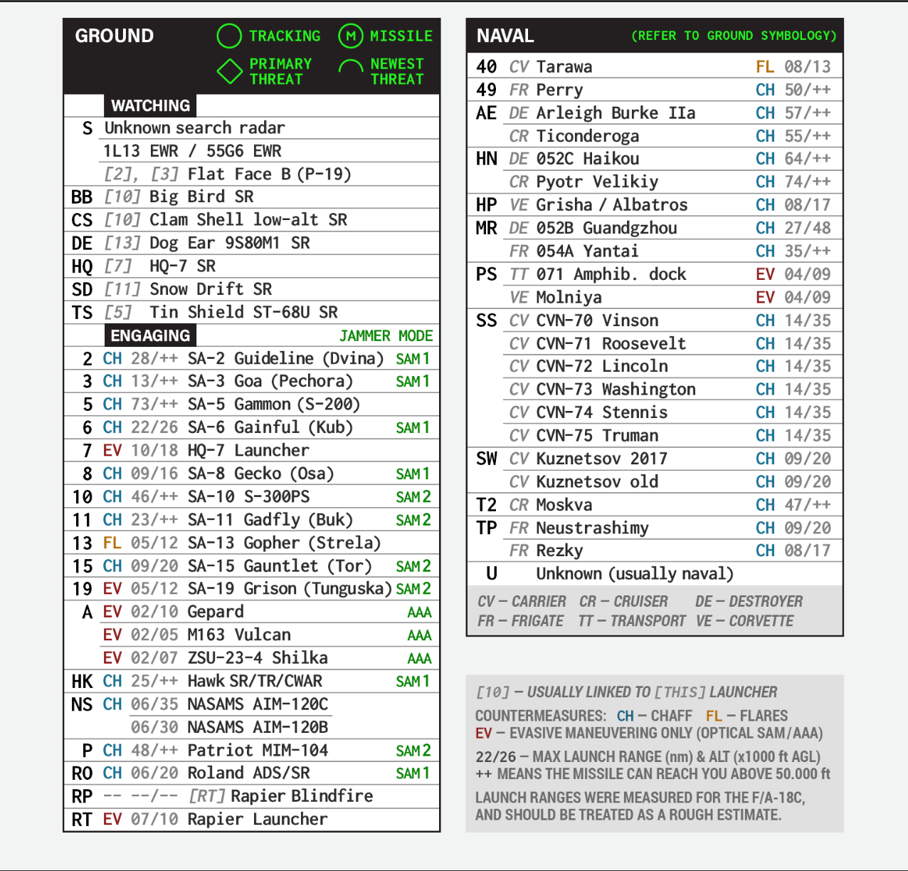 SAM & HARM Quick Reference Kneeboards